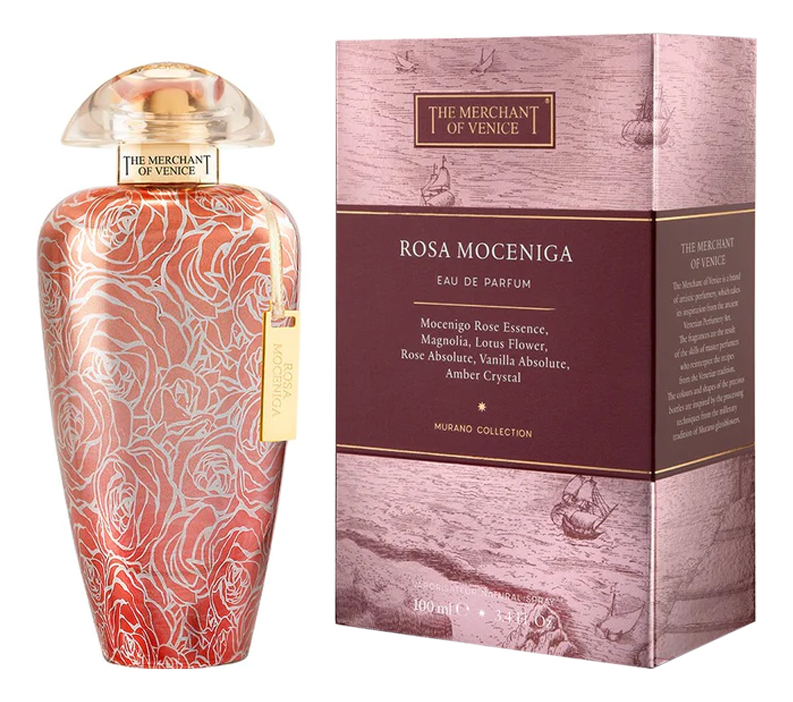 Парфюмерная вода The Merchant of Venice Rosa Moceniga - это изысканный аромат, который подойдет для женщин, ценящих роскошь и утонченность. Начальные ноты открываются свежими цитрусовыми аккордами, которые постепенно переходят в нежные цветочные ноты розы и жасмина. База аромата состоит из теплых древесных нот, создающих стойкий и чувственный шлейф. The Merchant of Venice Rosa Moceniga - идеальный выбор для особых случаев, когда вы хотите подчеркнуть свою женственность и элегантность.